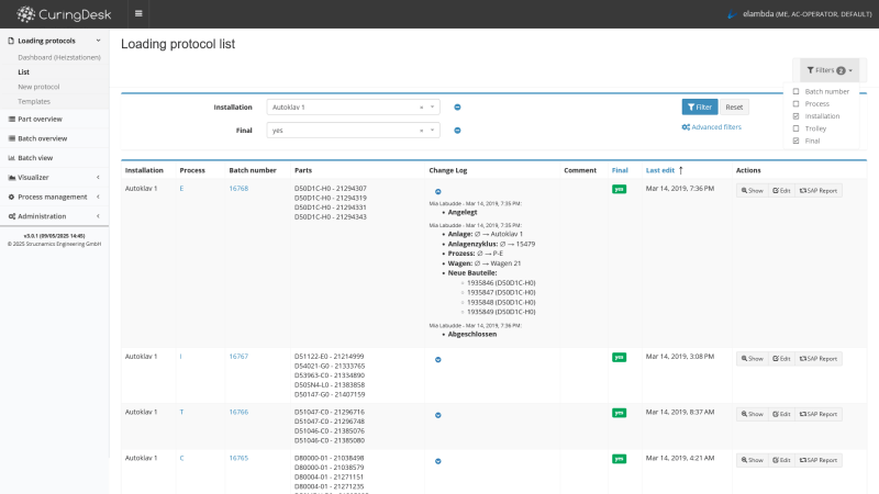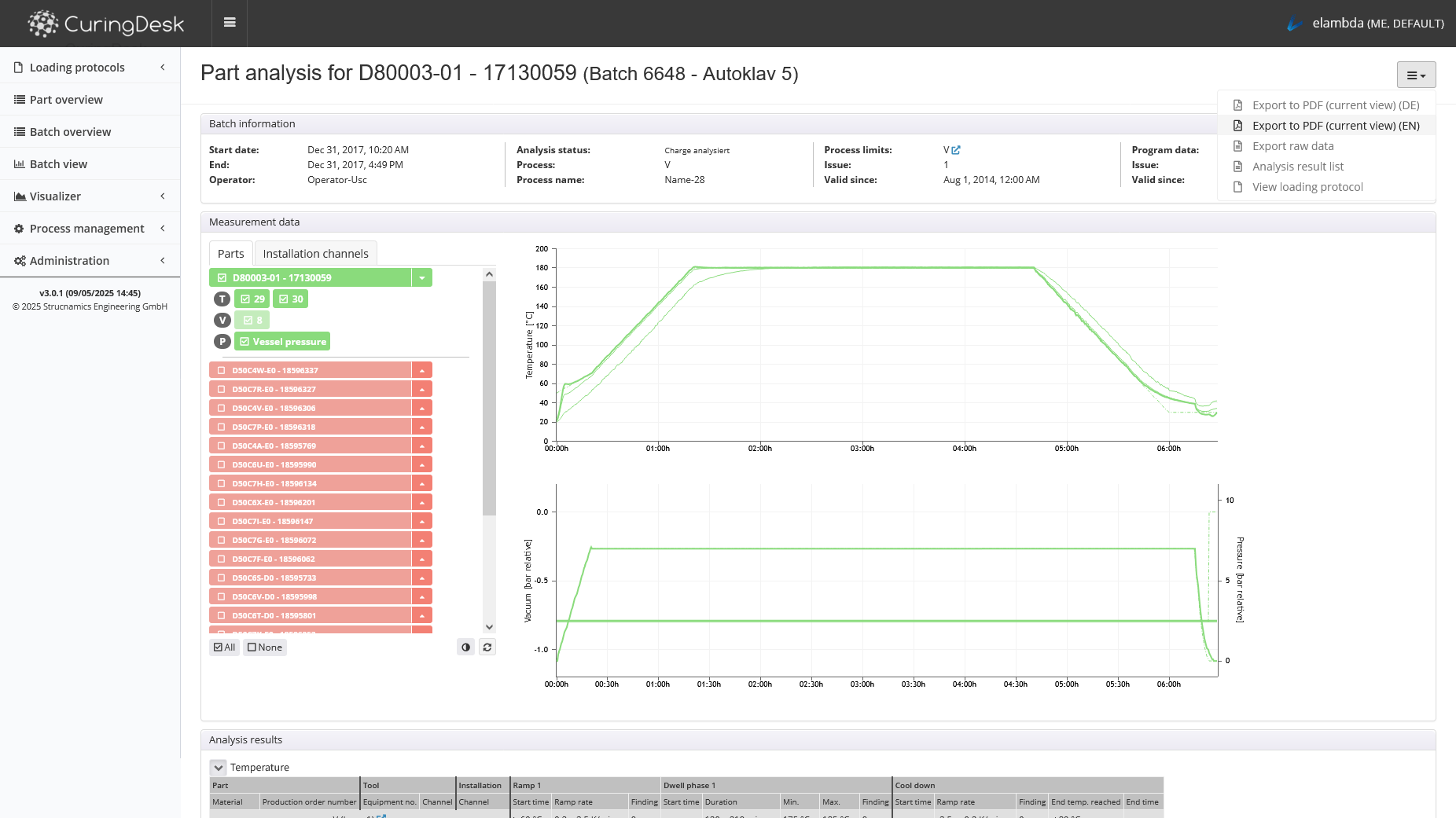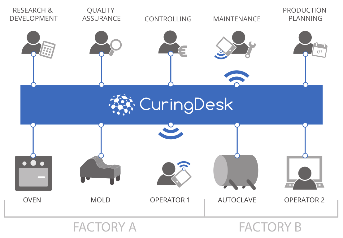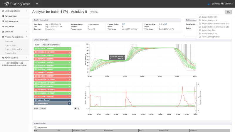 CuringDesk provides a comprehensive overview of all processes, tools, sensors and parameters. Automated data analysis and reporting increases the efficiency of monitoring curing processes.